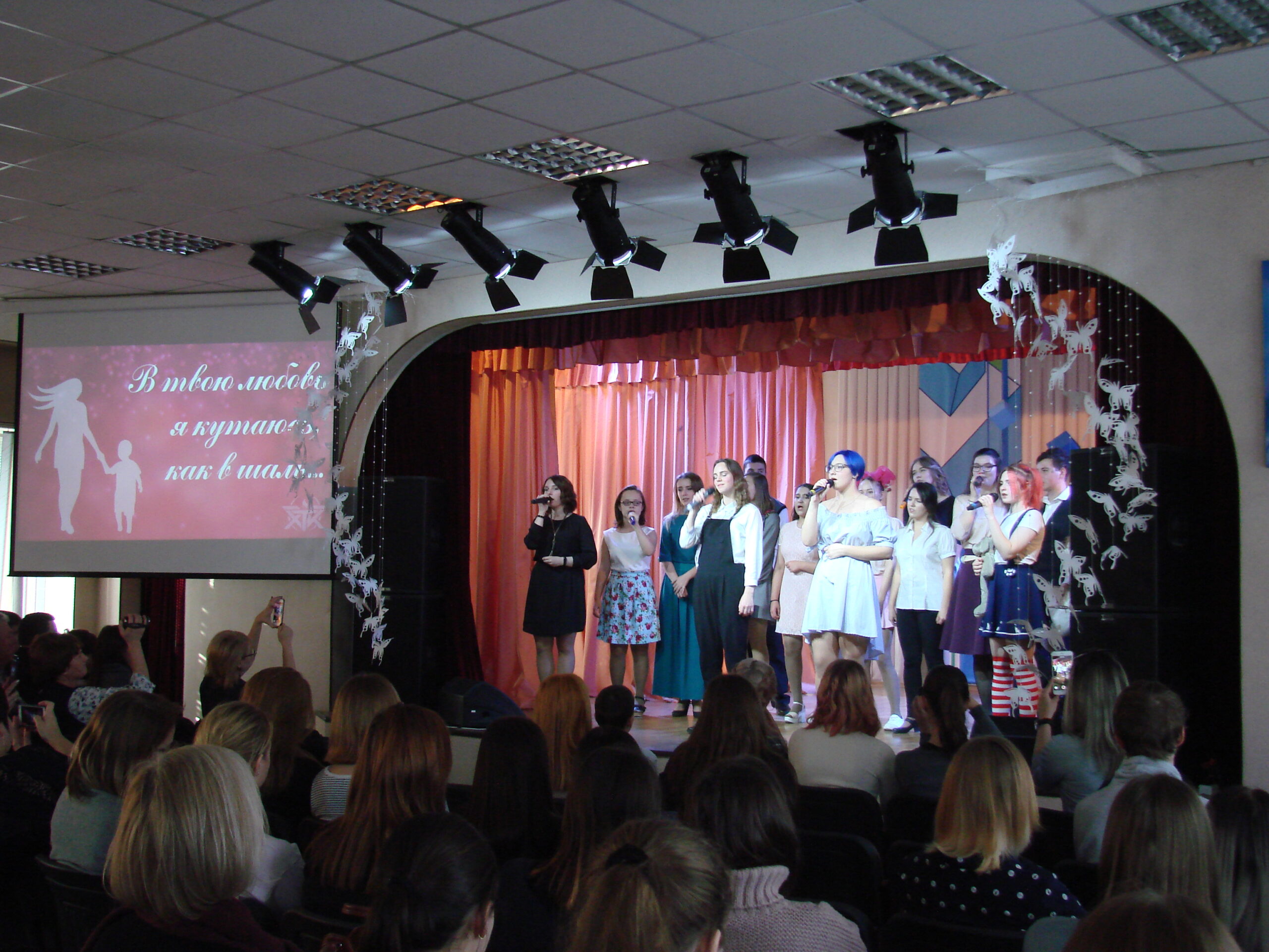 Концерт, посвященный Дню матери, наполнен особыми эмоциями. К нам в гости приходят мамы студентов: для них звучат слова признательности, благодарности, любви. «В твою любовь я кутаюсь, как в шаль…», — так однажды написала в своем стихотворении студентка нашего колледжа Васильева Юлия, и с тех пор эти слова стали эпиграфом к традиционному концерту.