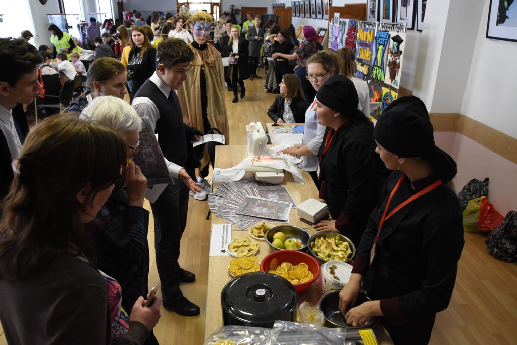 Все желающие, а их было более 860 человек, могли посетить мастер- классы и пройти профессиональные пробы по всем специальностям нашего колледжа. Гостеприимство начиналось сразу у входа в колледж. Гостей встречали Технолоджик, Технокот и яркая фотозона, угощали полезным травяным чаем.