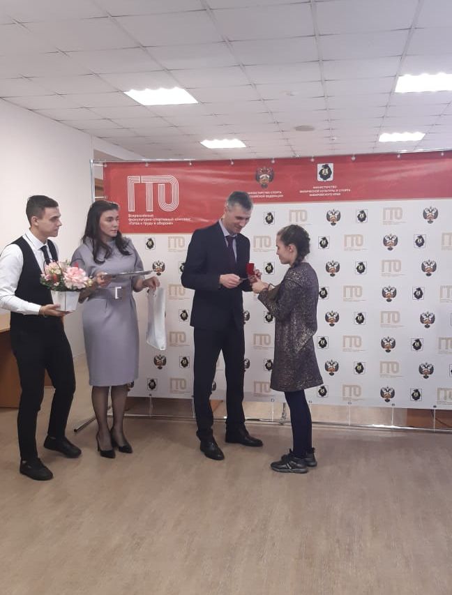 Участников награждения поздравил заместитель министра по физической культуре и спорту Хабаровского края Шульга Вадим Александрович. Он поздравил участников и вручил им Знаки отличия и памятные подарки.