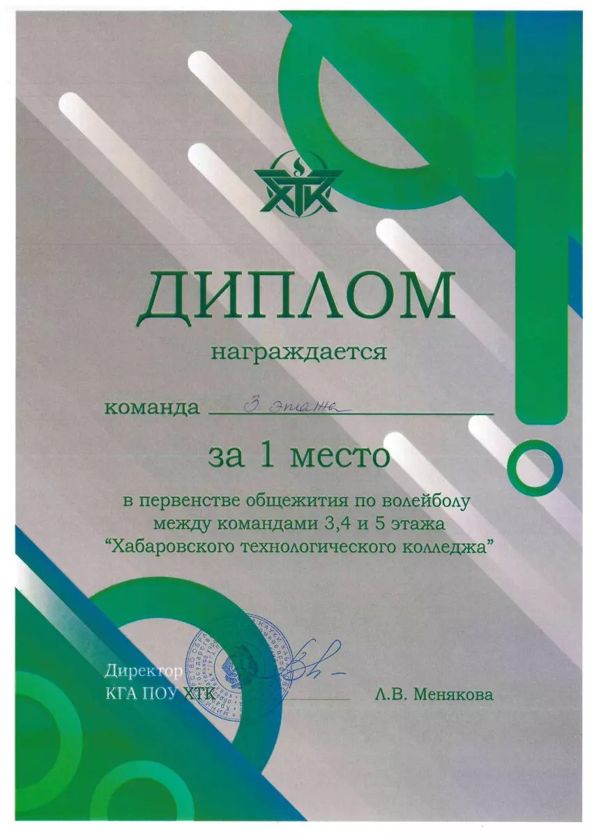 Приказ о создании структурного подразделения студенческий спортивный клуб КГА ПОУ ХТК